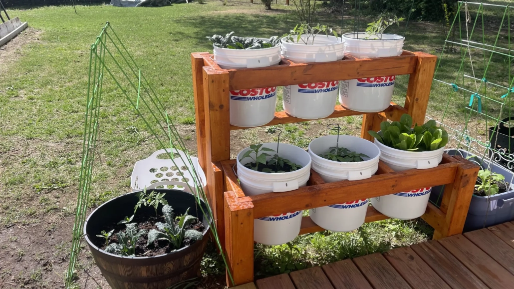 If you’re growing vegetables in 5-gallon buckets, this simple two-tier stand will change the way you garden. It keeps your buckets off the ground, puts everything within easier reach, and stacks your growing space vertically so you can fit more plants in a smaller footprint.
